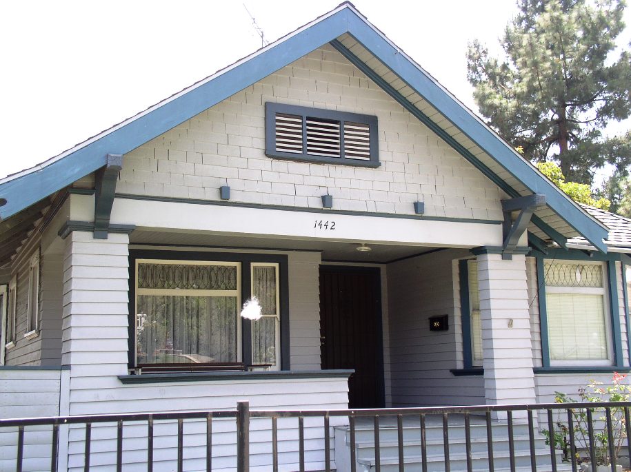 These four homes were labeled by architectural academics as “Bungalows”. The bungalow form became the common builder’s house between 1910-1920, influenced by Greene and Greene. Numerous “bungalow books” promoted the new style and form. The type, with many variants, included these features: low, gabled, one or one-and-a-half storied house; front pitch of roof extended to shelter a large porch (incised porch). By the 1990s the craftsman style and its associated bungalow form was enjoying a revival across the United States which has yet to ebb. More Americans are either restoring older bungalows or purchasing newer “neo-craftsman” bungalows constructed now by the larger “production” builders or as specially designed custom homes.