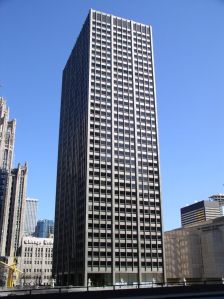 Chicago, IL. This is the epitome of international office-tower architecture: a uniform curtain wall “draped” over a steel frame.