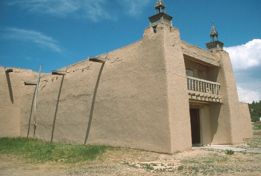 Identifying Features: Local building materials, especially adobe, and simplified Baroque-style features for churches and missions. In the American Southwest the Spanish colonists relied on single-story adobe structures with generally flat roofs and parapets, not much different from the Pueblo Indian tribes of the Rio Grande Valley. Mission churches were typically more elaborate with Baroque elements, but simpler and smaller the further one moved northward from Mexico.
